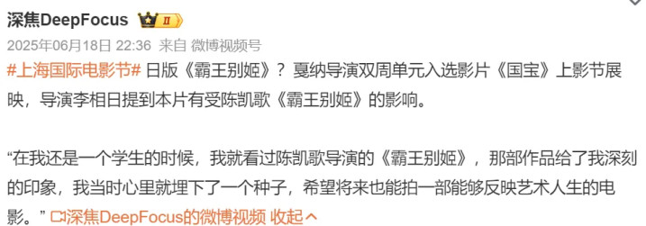 导演李相日在采访中直言,他正是受了《霸王别姬》的启发才拍了这部电影。